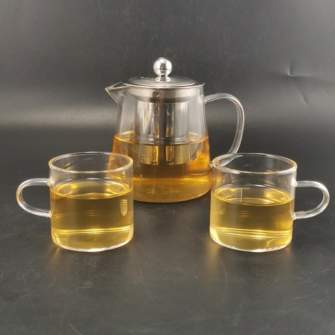 OEM/ODM Acceptable 21 oz High Borosilicate Glass Teapot with Glass Strainer Tea Pot with Cup