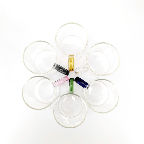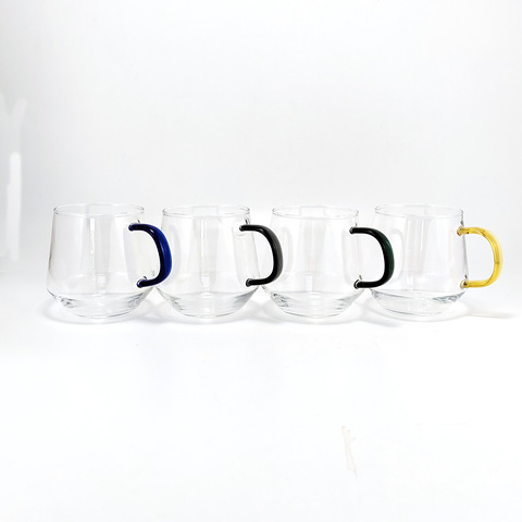 New Design Modern Style 400 ml 14 oz Borosilicate Glass Tea Cup Set of 4 Glass Coffee Cup with Colorful Handle